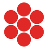 Red atomic or molecular structure graphic